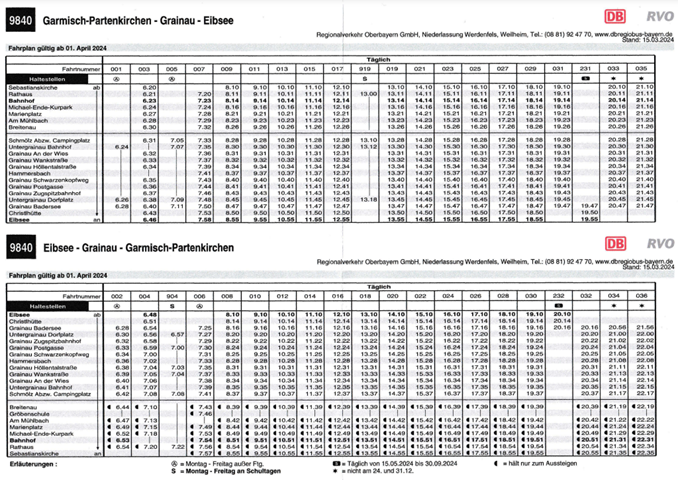 Der Fahrplan kann auf der Internetseite des Landratsamtes Garmisch-Partenkirchen abgerufen werden (www.lra-gap.de/de/fahrplanheft) und ist am Ende dieses Berichtes einkopiert.