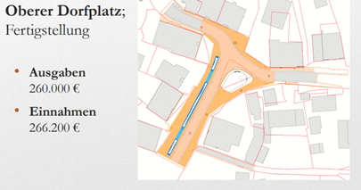 Seit 08.03.2024 werden die Baumaßnahmen am Oberen Dorfplatz fortgesetzt. Im Hinblick auf die für Mitte dieses Jahres vorgesehene Fertigstellung hat der Gemeinderat mehreren Nachtragsangeboten zugestimmt.